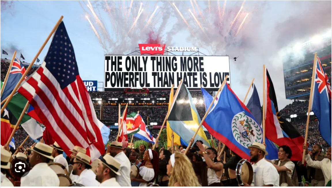 1️⃣ *You can fully lean into one culture while also not excluding others.* Certainly, this was a love letter to Puerto Rico but there was nothing antagonistic to others. In fact, it called so many people into the performance, whether that was through Lady Gaga’s singing or Bad Bunny parading with all of the flags and shouting out all the countries in the Americas, including non-Spanish speaking countries and including the US and Canada. You can simultaneously highlight uniqueness AND unity.